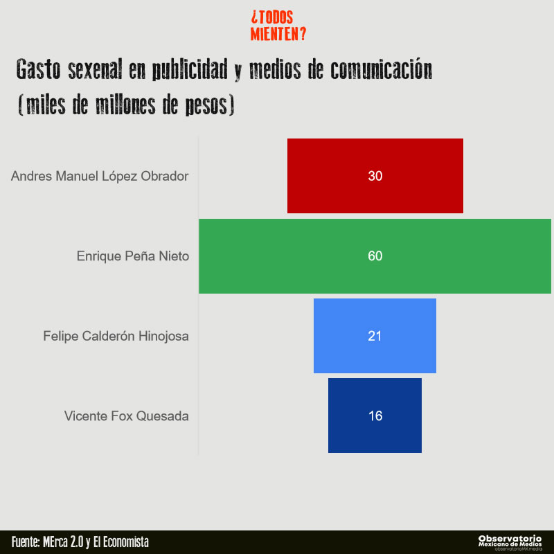 La concentración del poder mediático ha sido criticada en los últimos años. Durante el sexenio de López Obrador, el presidente se ha pronunciado frecuentemente en contra del gasto excesivo en comunicación. Entre enero y agosto del 2019, el presupuesto fue de 88 millones de pesos (4.6 millones de dólares), apenas un 3.6% del gasto de 2018 durante el mismo periodo en la administración de Enrique Peña Nieto, según la Secretaría de la Función Pública (SFP).