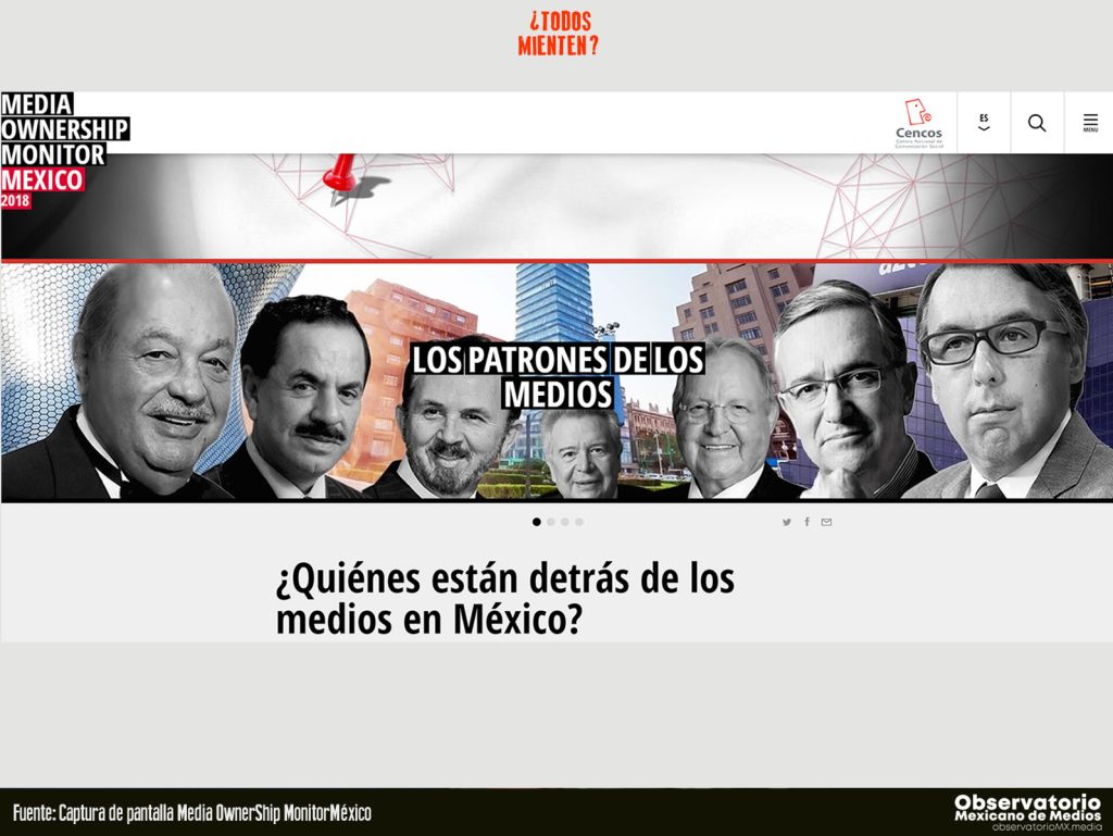 Según el proyecto Media Ownership Monitor México 2018, los principales medios de comunicación en México están concentrados en 11 grupos empresariales, controlando la difusión de noticias en televisión, radio, medios impresos y plataformas digitales.